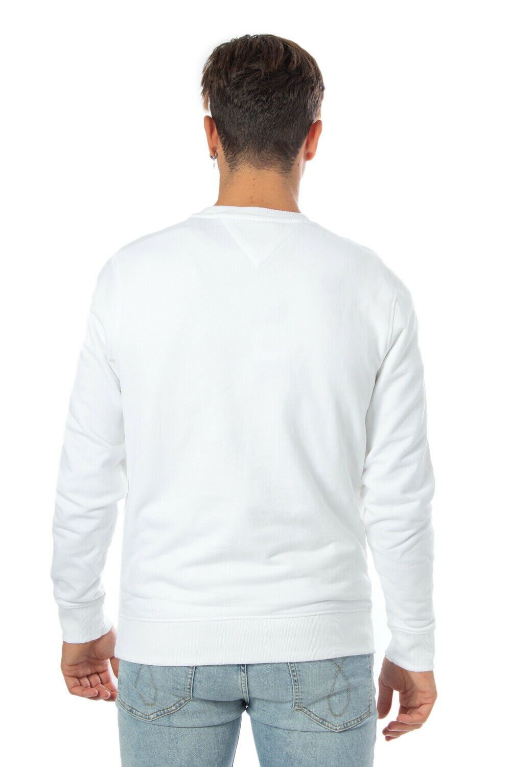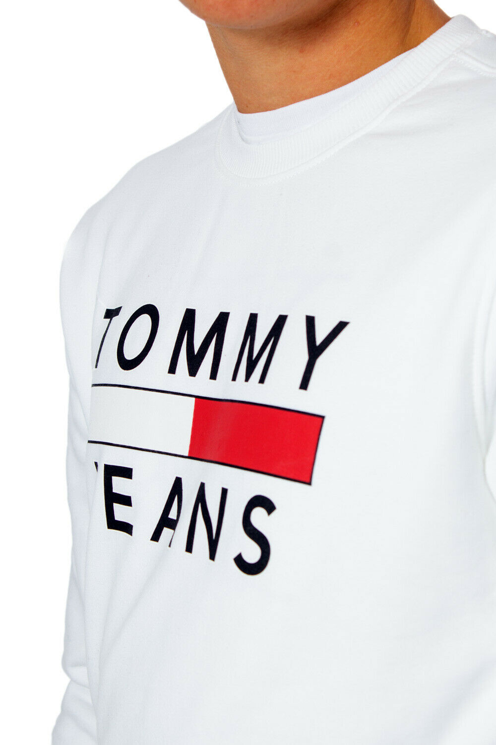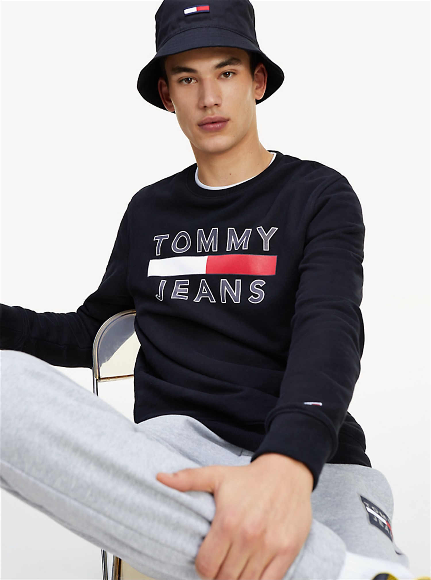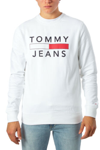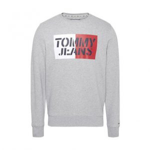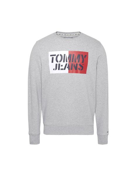 Sudadera de manga larga realizada en felpa de algodón orgánico en color gris vigoré y blanco. Cuello redondo acanalado. Cinta distintiva de la marca en el interior. Logo de Tommy Jeans impreso en el pecho. Canalé elástico en puños y bajo. Fit regular